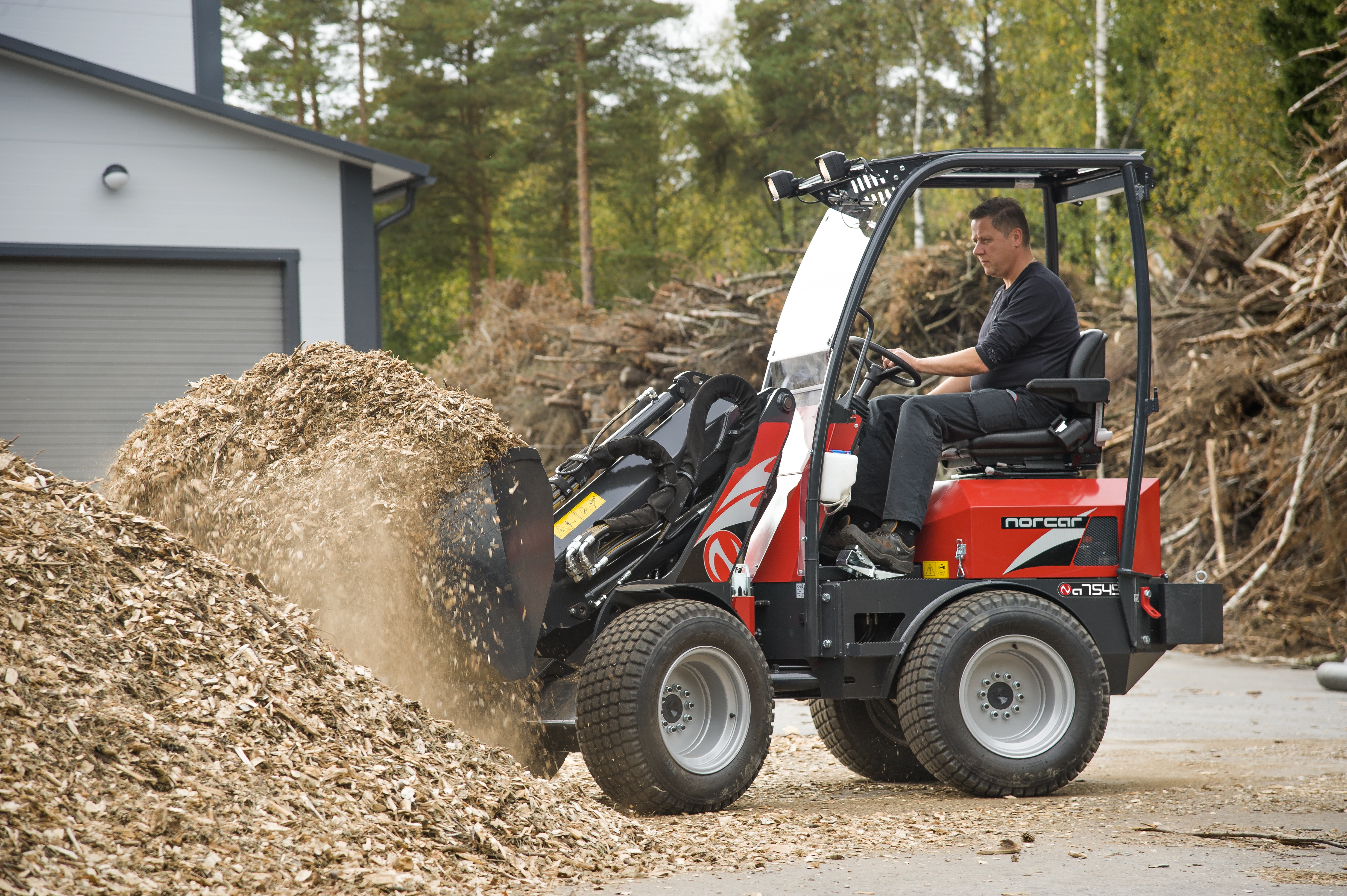Norcars minilastare är starka och effektiva i ett litet och smidigt format. Lastarna har förarplatsen placerad på bakvagnen, likt större hjullastare. Det gör att man kan ta sig fram utan problem även i mycket trånga utrymmen. Den pendlande midjestyrningen gör att lastaren står stadigt på alla hjul oberoende av terräng.