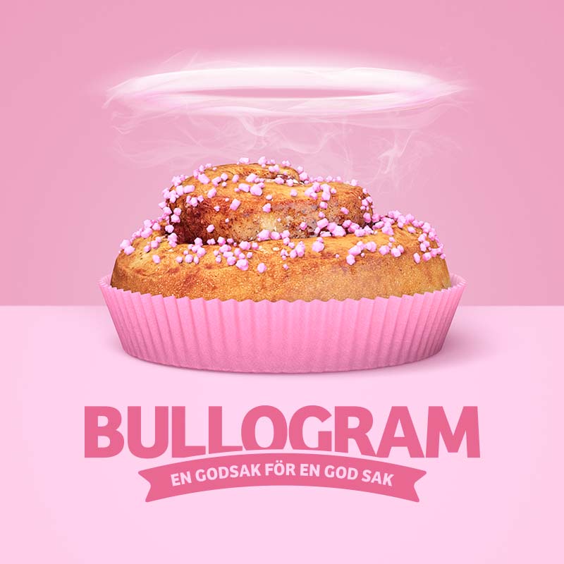 Under hela oktober kan du via Bonjours bullogram.nu skicka en kanelbulle till någon du tycker om. Bullogrammet med en nybakad rosa bulle kan sedan mottagaren hämta ut hos valfri Pressbyrå runt om i hela Sverige. Ett Bullogram med en bulle kostar 25 kronor. 10 kronor per Bullogram går direkt till Bröstcancerfondens viktiga arbete.